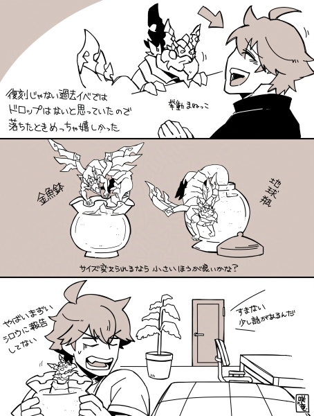 今復刻しているので、以前思い出の記憶からイベントシナリオ読ん… 今復刻しているので、以前思い出の記憶からイベントシナリオ読んだ時の初見感想絵を。あのドロップやっぱりバグだったんですね。 2025/09/05
